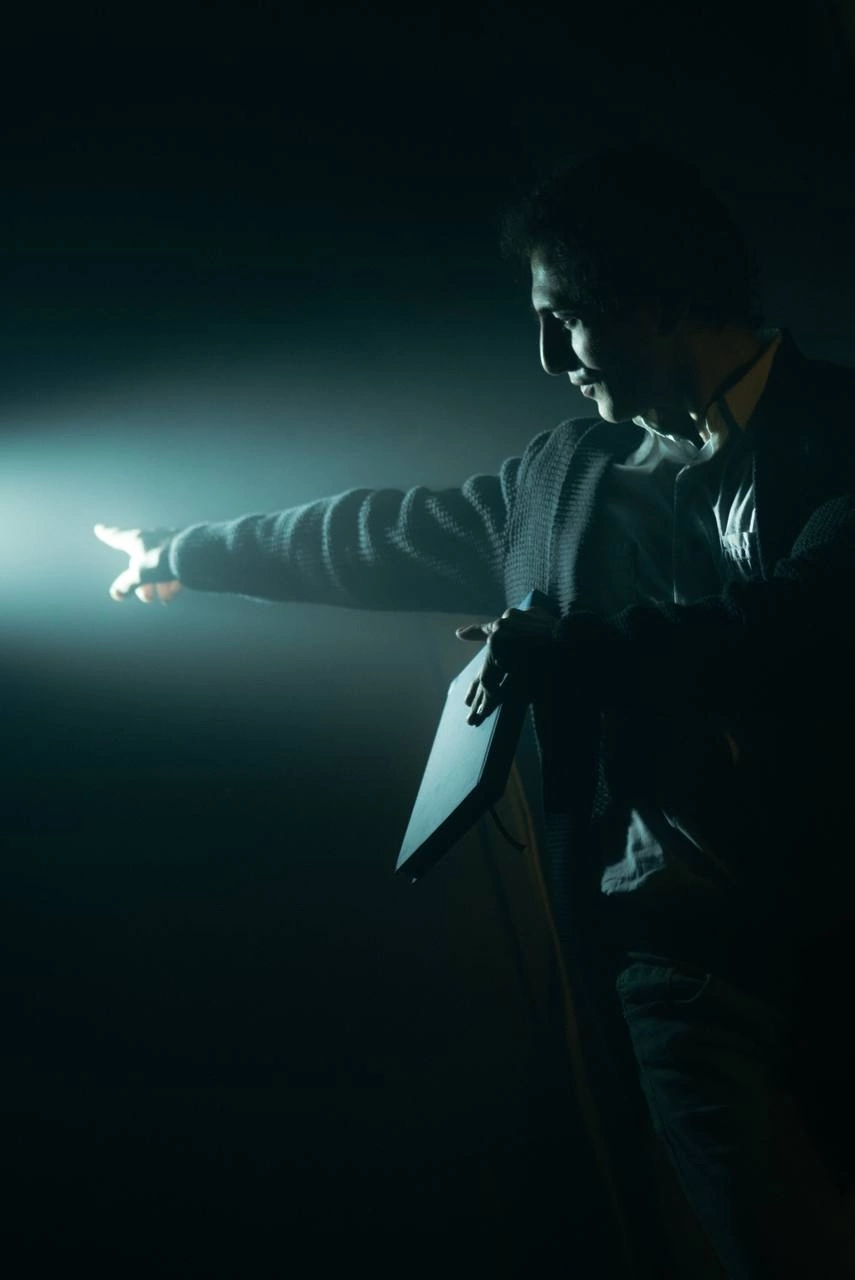 В центре действия — Алексей Дыбин, в сольной роли, где драматическая мощь текста сочетается с пластикой тела и музыкальной образностью. Его герой — одинокий музыкант, застрявший между партитурой жизни и немотой чувств. И в какой-то момент он не просто говорит — он начинает танцевать танго с контрабасом.